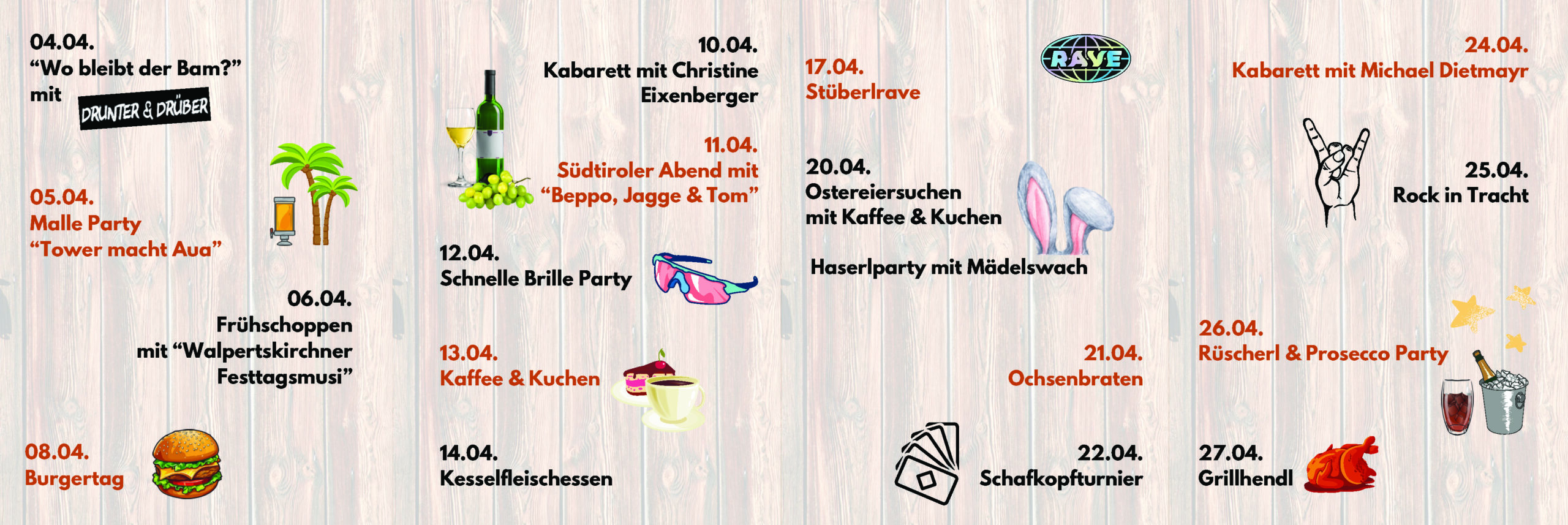 Am 4. April öffnet unser Maibaumstüberl in die schönste Zeit des Jahres. Täglich ab 17 Uhr laden wir Euch herzlich ein.